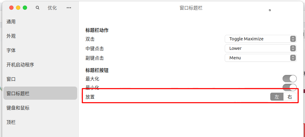 - 将标题栏的操作按钮从右侧移动到左侧。